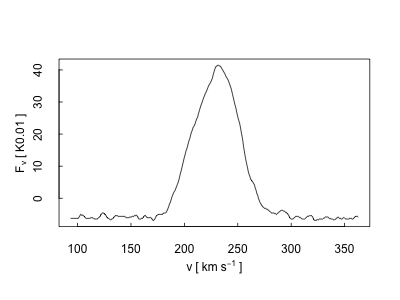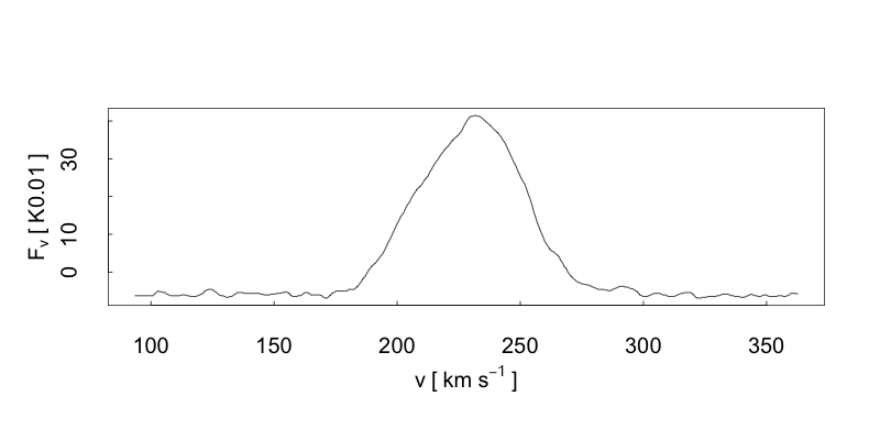 | Spectral Resolution: | 11.0 km s-1 | Aperture/Beam Size: | 642.0 arcsec |